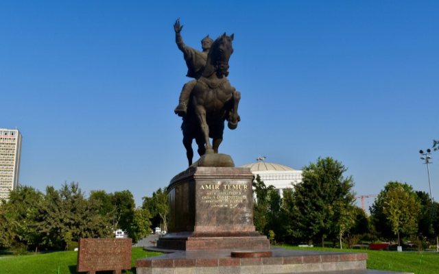 Modern Taşkent’in kalbi sayılan Emir Timur Meydanı; yeşil alanları, fıskiyeleri ve meydanın merkezinde yer alan Büyük Emir Timur’un atlı heykeli ile şehrin en önemli simgelerinden biridir.