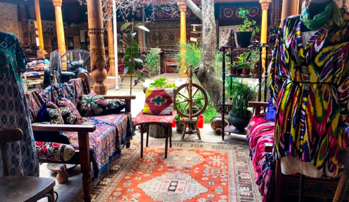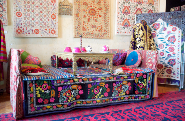 Özbekistan’ın ünlü el sanatları merkezleri (Çust, Riştan, Margilan, Buhara) hakkında bilgi verilir.